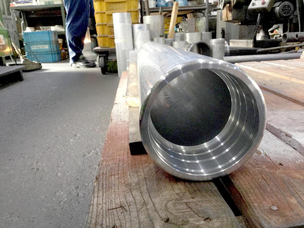 丸芝製作所は大径・長尺の丸物加工、特にアルミパイプの加工を得意とします。写真の変電所で使われる開閉装置の部品のような、私たちの暮らしを支える物の部品を作っています。