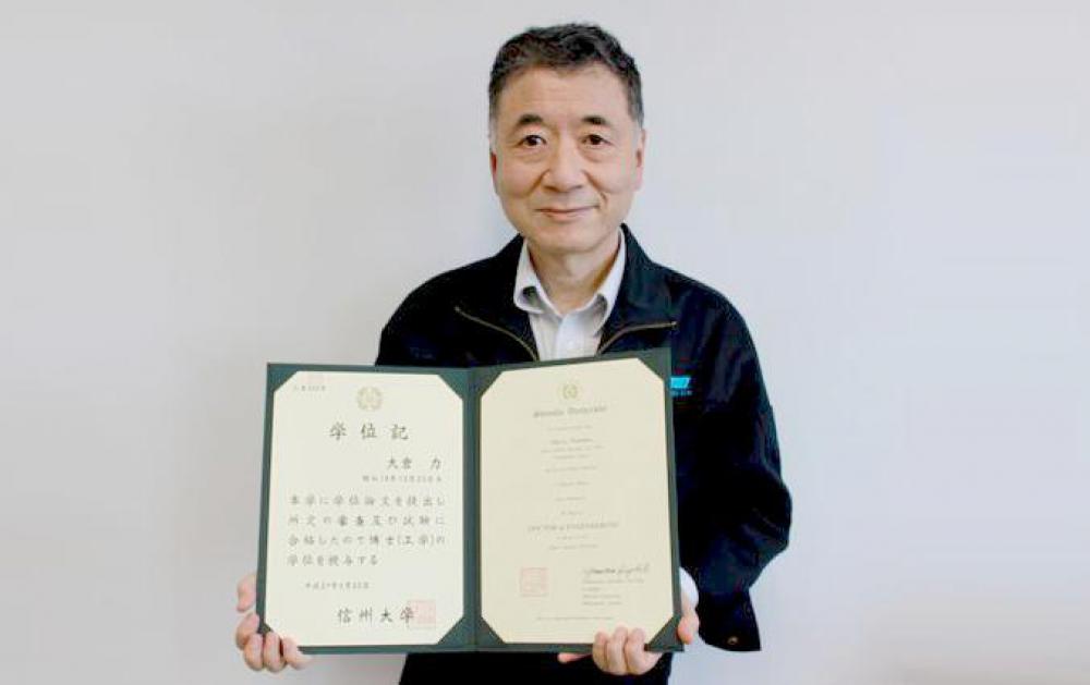 会社を支えてきたこの技師長は、一昨年、信州大学の工学博士の学位を取得しました!今日もなお挑戦のマインドを持って仕事に打ち込みながら、次世代への知識・技術の継承にも力を注いでいます。