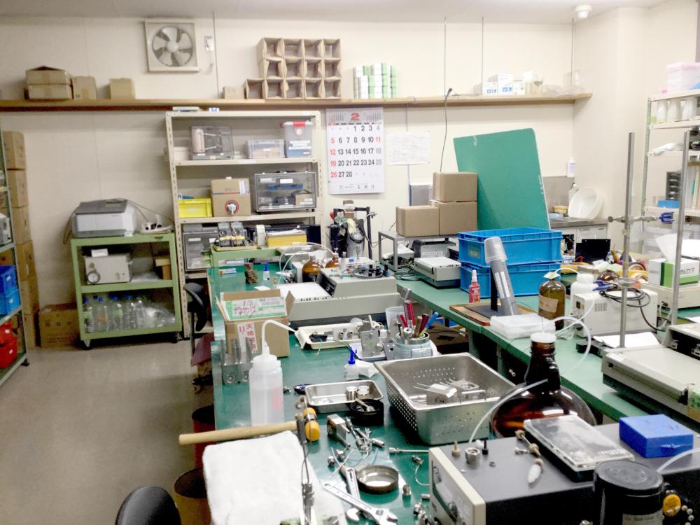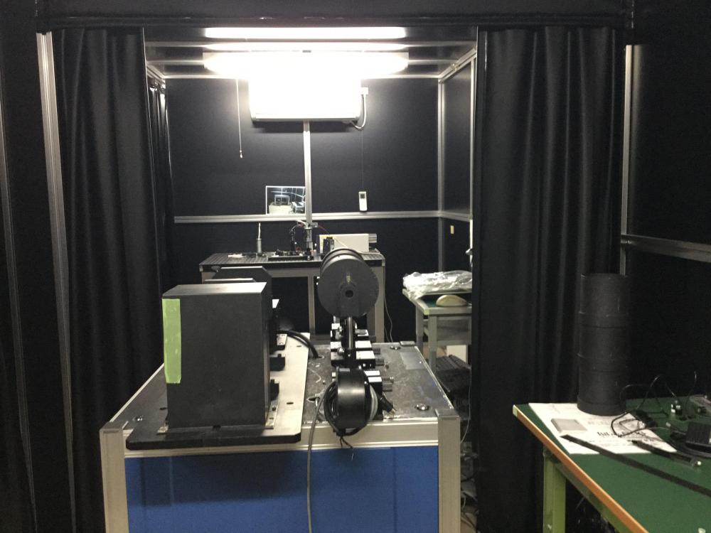 光学機器の組み立てをするための暗室もあります。ISOの国際基準である標準光源を再現するため、外光の影響を受けないよう管理され、温度湿度も一定に保たれたクリーンエリアです。