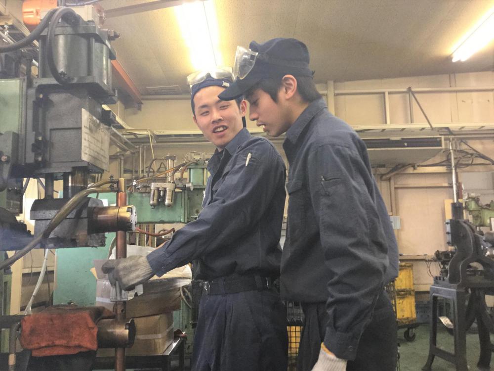 機械の操作方法など業務に関することは、2~3年目の社員に任せています。年も近くて接しやすいということもありますが、教える経験をすることも重要です。現場での教育で、教わる側・教える側とも成長できます。また、必然的に交流が生まれてコミュニケーションが円滑になるので、業務を進めやすくなります。