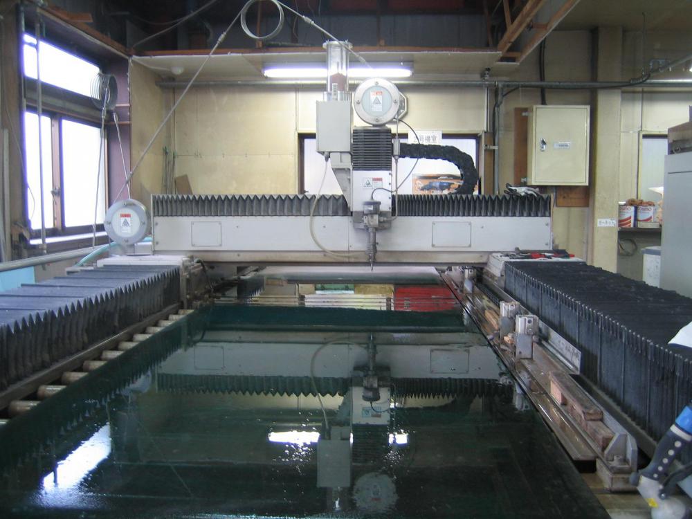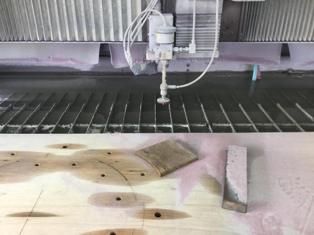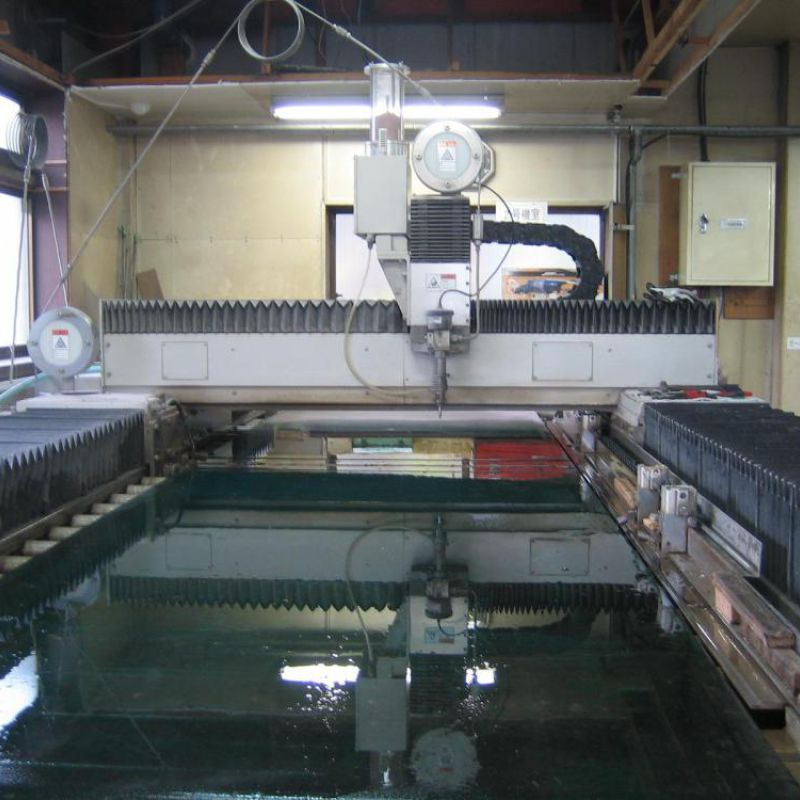 実は、この社名看板にも、自社でウォータージェット加工で作っています。とてもキレイに加工できるところが、ウォータージェットの強みです。