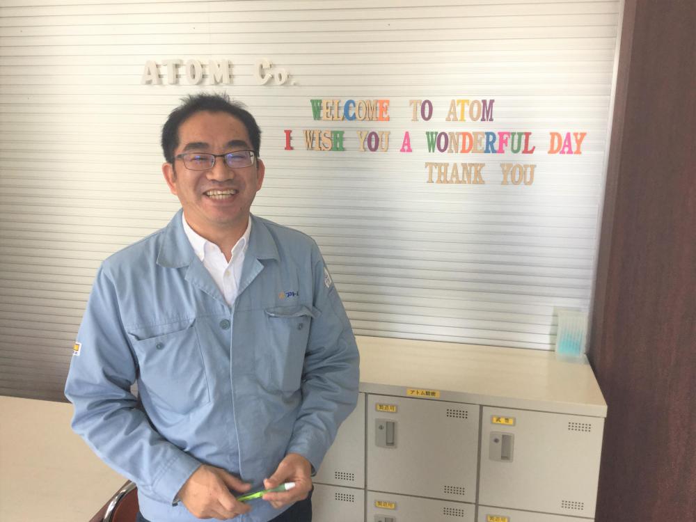余談ですが、私の後ろにある社名と英文は、私がDIYで作りました。結構いい感じの仕上がりじゃないですか?(笑)