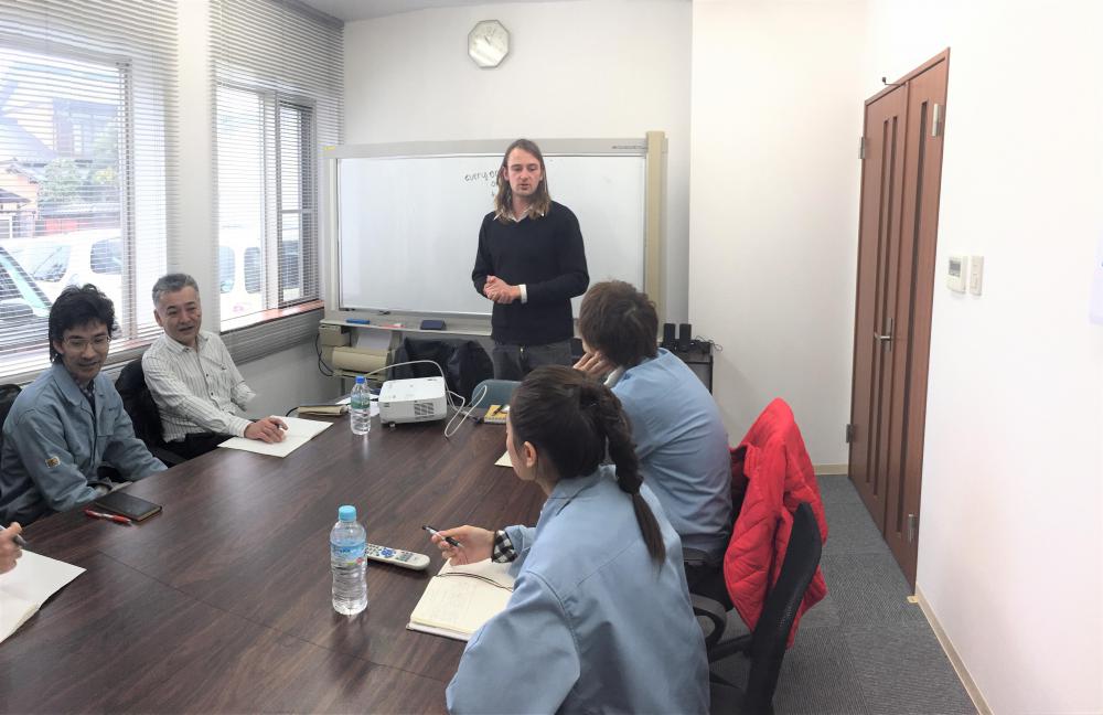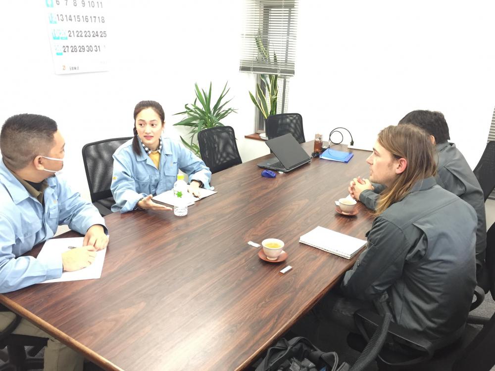 この写真は、当社のインターン生が他者のインターン生から英語を教わったり、当社の社員が他社のインターン生に日本語を教えたり、と交流している時の様子。海外の人材にも多く活躍してもらうために、積極的にこういった交流の場を作っています。社長は海外からのインターン社員と高尾山登山するなどもしています。
