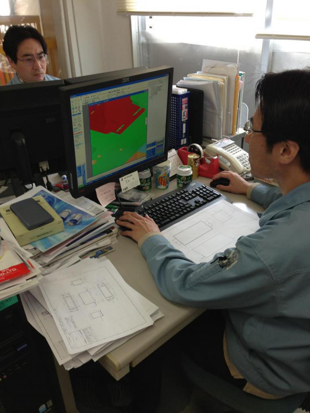 写真上は、設計をしている社員です。設計スタッフの中には、お客様から「また〇〇さんに設計をお願いしたいです!」とご指名が入ることもあります。これはとても嬉しいですし、こういった社員ひとり一人の力が当社の強みでもあります。