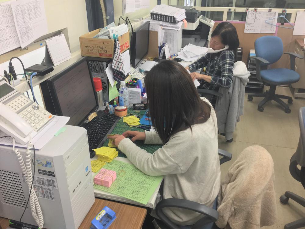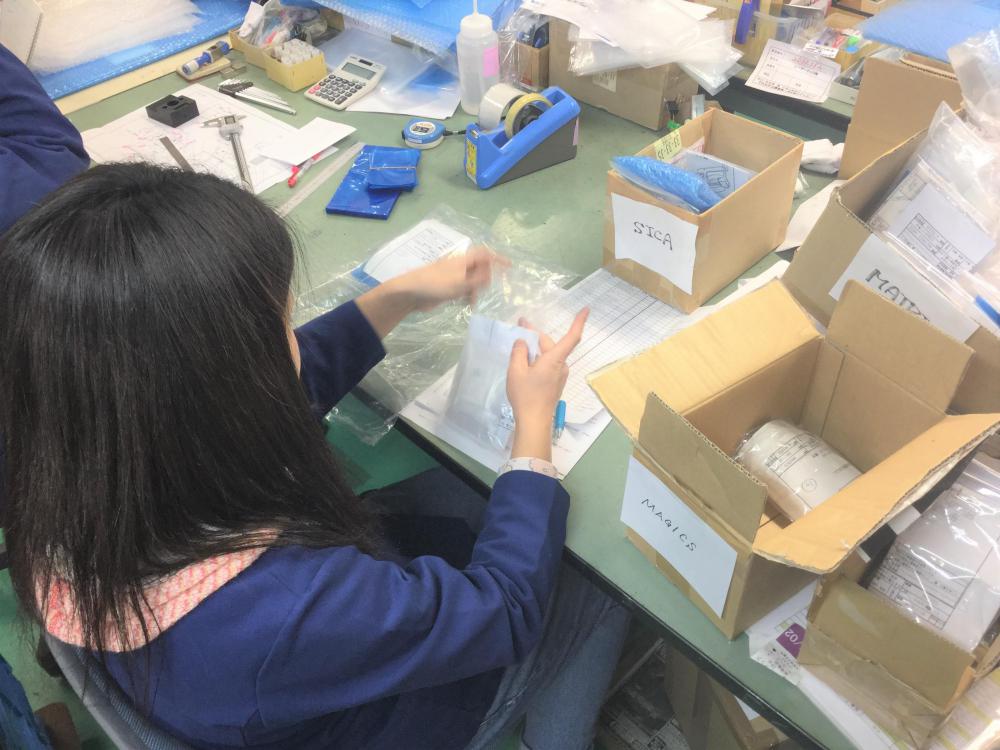 現在当社には9名の女性社員がおり、その多くの方が、この資材購買の業務を行っています。届いた製品の検査を行いますが、丁寧に細かいところまでチェックするためには、女性の力が欠かせません。