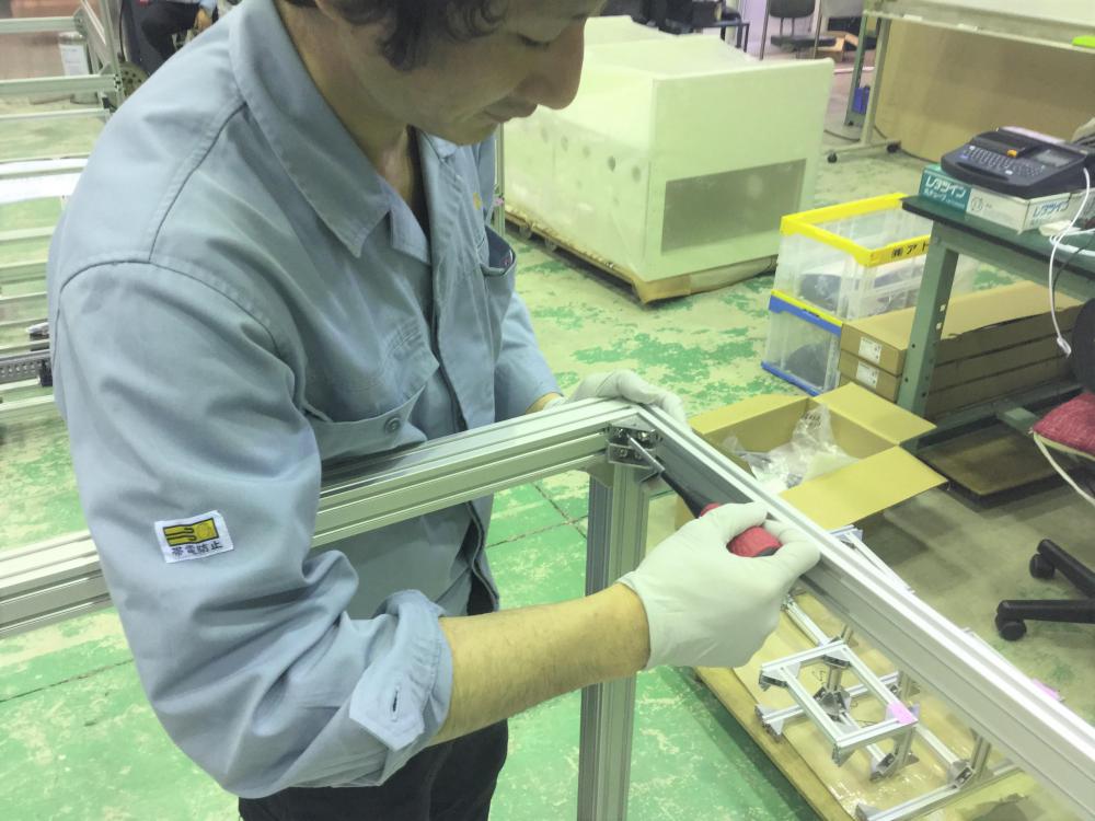 製品はお取引先との秘密保持契約などの理由から、写真でお見せすることができませんが、そのほとんどが、オーダーメイドになっており、大きさにもよりますが、約1500もの部品を組み合せ作るものなども多くあります。