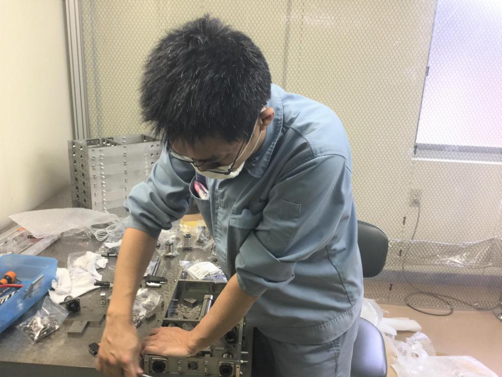 入社して10年が過ぎました。最初はアルバイトとして入社しました。現在は、正社員となり、産業用装置の組み立てを行っています。モノづくりのやりがいは、自分が関わったものが形になった時の喜びだと思います。