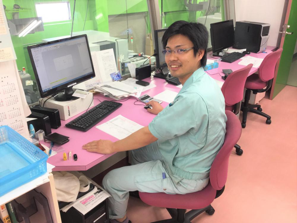 彼は、関連会社であるエーアンドエーシステムで知財業務や企画業務を担当しています。ここ数年、自社製品を数多く開発していますが、その際は企画から関わっています。医療機器の認可申請や特許申請なども彼にお願いしています。以前は、自社HPの作成も行っていました。幅広く責任重大な仕事を着実に処理していく姿は、本当に頼りになります!
