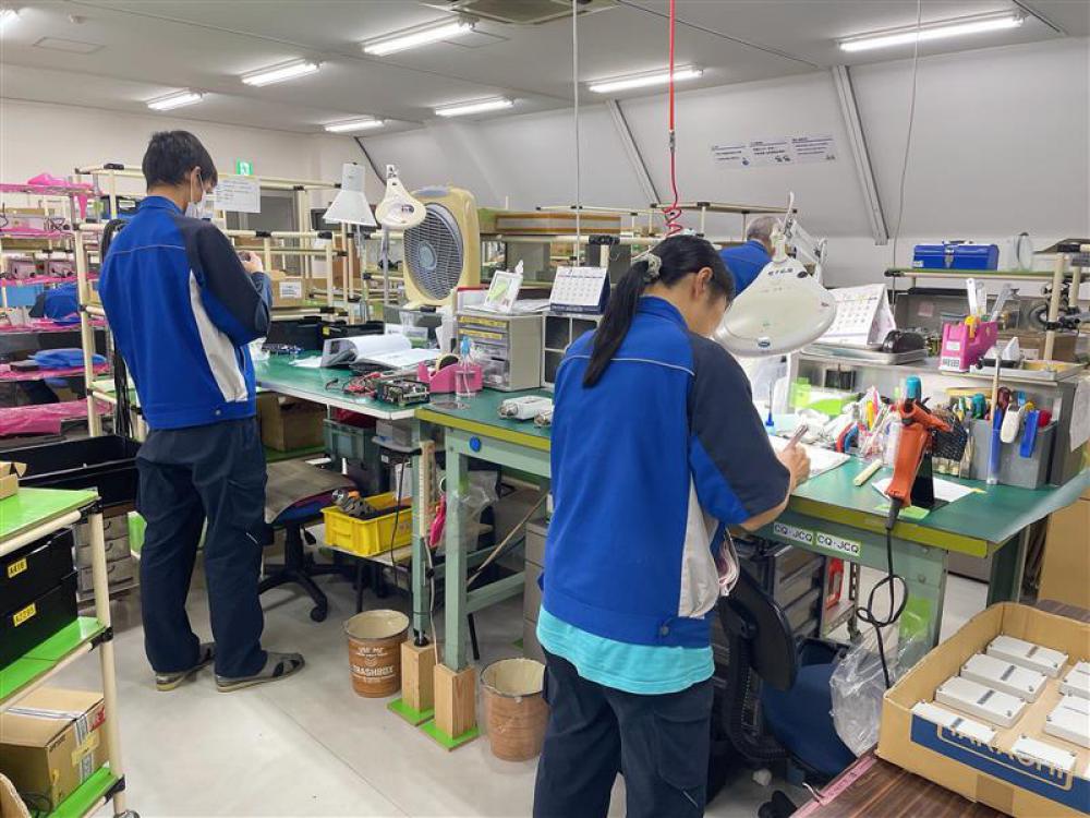 具体的には・・はんだ付け作業、電子機器の簡単な組立作業(ネジ止め等)、ピンの圧着作業(力のいらないピン止め等)、配線作業、など。立ち作業になりますが、座って作業する仕事もあります。