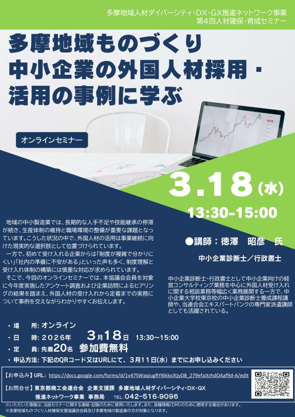 ※お電話でのお問い合わせの際には、「多摩地域人材ダイバーシティ・DX・GX推進ネットワーク事業」に関する問い合わせである旨お伝えください。