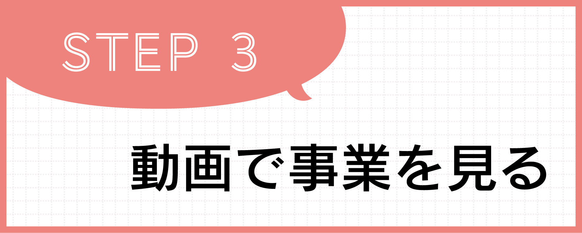 - 事事業への参加を希望される方は、STEP1のWEB説明会動画、STEP2の「詳細の説明を確認する」にて事業内容を確認いただき、事業参加の意思についてメールにてご連絡ください。その際にご不明点などもお気軽にお問い合わせください。
