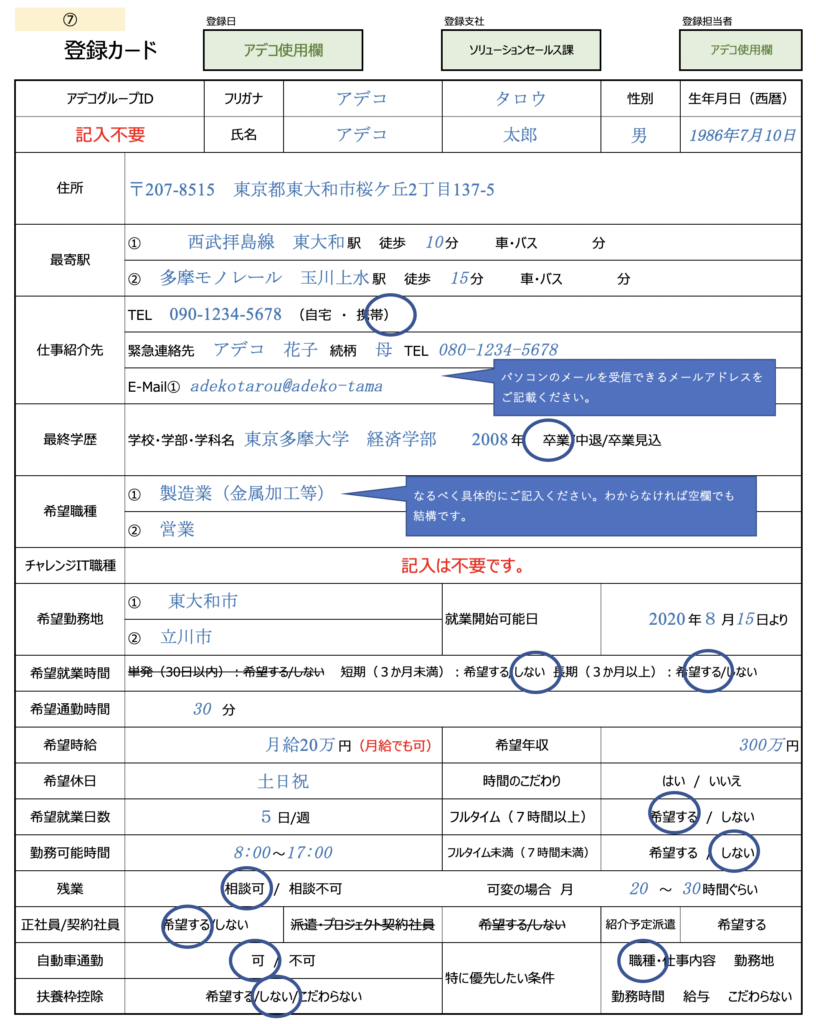 追って、アデコにも必ず下記内容を入れてメールをお願いします。