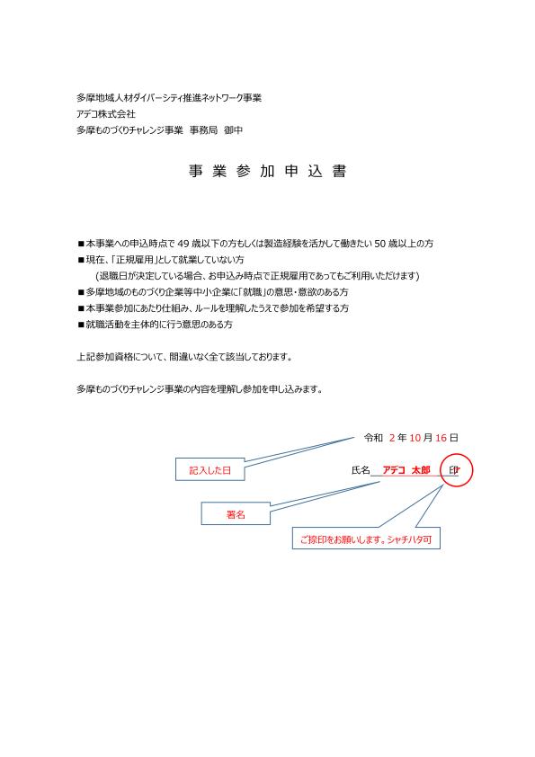 3. 事業参加申込書 | 「多摩ものづくりチャレンジ事業」参加のお申込書 |